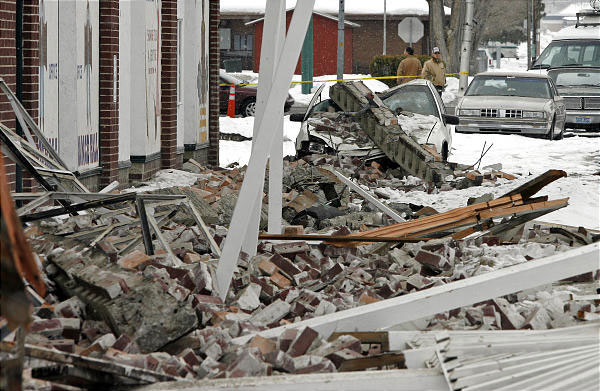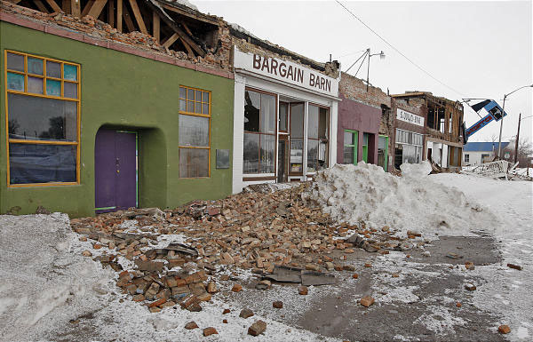 Photo: Damage in the historic district of downtown Wells, Nevada, as a 6.0 earthquake at 6:16 am PST today. (Tom Smart, Deseret Morning News)