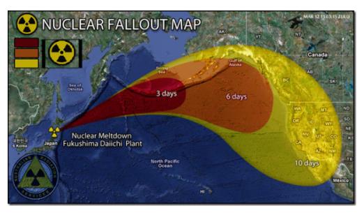 UPDATE: March 12th, 8:50pm CST We spoke to Linda Gunter of Beyond Nuclear regarding the removal from their site of the graphic below. Citing continuing contradictory reports and ongoing uncertainty as to what has been released and at what levels, they are taking a cautious approach. "It would be wise to monitor radiation levels on the West Coast," she said.It would be wise to monitor radiation levels on the West Coast," she said.