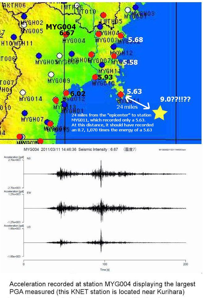 This quake was initially asessed a 6.8, and the seismic data will show anyone the epicenter was inland, not at sea. So it started a 6.8, then got upgraded to a 7.9, then got upgraded to an 8.4, then got upgraded to an 8.8, then got upgraded to a 9.0, and had the epicenter put out in the ocean. Now many are saying it was a 9.1 which would bump up MYG011's number to 1200 from 1070, and it is all based on tsunami effects, not seismic data.
