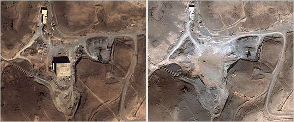 The satellite images of the Syrian site were taken by DigitalGlobe, in Longmont, Colo., and SPOT Image Corporation, in Chantilly, Va. They show just a smooth, unfurrowed area where the large building once stood.