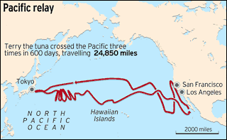 Let’s use tuna as a radiation example ~ The ocean currents head from Japan to the West Coast of the U.S.~ For example, the Telegraph notes that scientists tagged a Bluefin tuna and found that it crossed between Japan and the West Coast three times in 600 days ~ The Bluefin spawn off Japan, and many migrate across the Pacific Ocean. Tissue samples taken from 15 Bluefin caught in August, five months after the meltdowns at Fukushima Daiichi, all contained reactor byproducts cesium-134 and cesium-137 at levels that produced radiation about 3% higher than natural background sources … The bad news is that it is only going to get worse.”