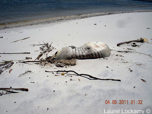Dead armadillo found near turtle on Gulfport beach Photo by Laurel Lockaby