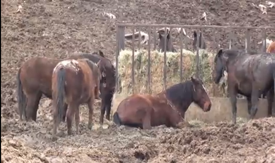 Last week, we shared with you video of the BLM's "Butterfield" (Herriman, Utah) holding facility where horses were forced to stand in knee-high mud and feces. BLM is now defending those deplorable conditions, saying they are "unavoidable" in springtime. However, keeping large numbers of wild horses in pens requires diligence and removal of animal waste in a timely fashion in order to avoid these types of conditions. After removing the mustangs from the range, the BLM has an obligation to keep them in sanitary and humane conditions.