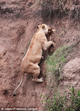 The dramatic rescue, captured by wildlife photographer Jean-Francois Largot, was played out in Kenya¹s Masai Mara game reserve.