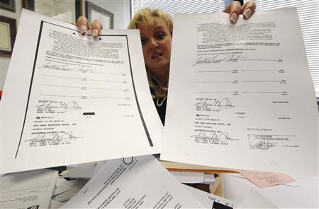 Bankruptcy court records reviewed by Reuters show that at least a dozen radically different documents purporting to be the authentic promissory note have turned up in foreclosure cases involving six different properties in the federal bankruptcy court for the Southern District of New York.