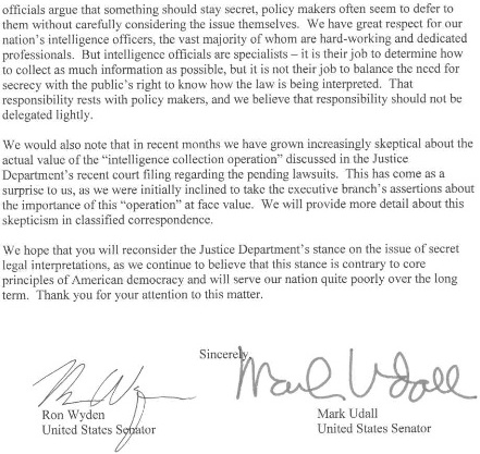 The joint letter by Democratic Senators Wyden and Udall goes straight to the point of their warning and legitimate fear for America’s future freedom: