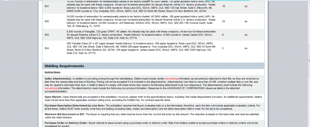On 9 Aug 2012, the Department of Commerce, for the National Oceanic and Atmospheric Administration by way of the National Weather Service, put out a solicitation for a small variety of ammunition.