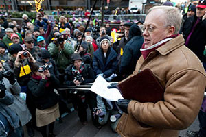 Truthdig columnist Chris Hedges, who is suing the government over a controversial provision in the National Defense Authorization Act, is seen here addressing a crowd in New York’s Zuccotti Park. |