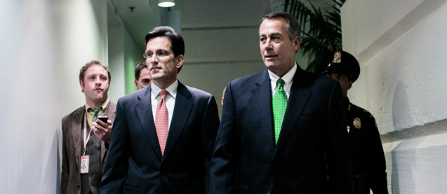 House Speaker Rep. John Boehner (R-Ohio), right, and House Majority Leader Rep. Eric Cantor (R-Va.), in Washington, January 1, 2013. (Photo: T.J. Kirkpatrick / The New York Times)