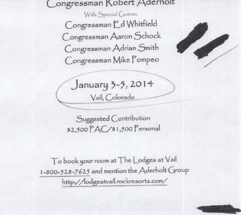 VAIL, Colo. — After some time in the hot tub, an evening cocktail reception and a two-and-a-half-hour dinner in a private dining room named Out of Bounds, Representative Adrian Smith, Republican of Nebraska, made one last stop, visiting the lounge at the Four Seasons Resort hotel here to spend more time with the lobbyists and other donors who had jetted in from Washington, D.C., to join him for the weekend getaway.