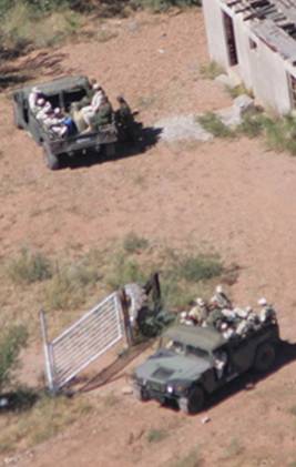 MEXICAN MILITARY ENCOUNTER (ARMED/INTENTIONAL) EL PASO – FORT HANCOCK STATION – At 2 p.m. on January 3, 2006, [Troopers] attempted to apprehend three vehicles believed to be smuggling contraband on I-10…As the vehicles approached the border, [Troopers] stated that a Mexican Military Humvee armed with a .50 caliber weapon and several soldiers were seen assisting smugglers return to Mexico…Officers then noticed several armed subjects dressed in fatigue type clothing unload the contraband into the Humvee. These subjects set fire to the stalled vehicle before leaving the area…
