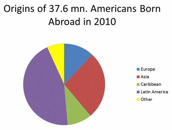 mmigration to the US is if anything accelerating. The 1924-1965 immigration law had been racist and set strict quotas for everyone but northern Europeans. Since 1965, up to 25,000 immigrants can come from each country in the world. Increasingly, immigrants come not from Europe but from Latin America & the Caribbean, from Asia, and from Africa. Immigrants and their children will by 2050 increasingly account for most new Americans. This chart is what the United State will more and more look like in the coming decades - heavily Latino, Caribbean and Asian and African (about 1.5 million of the "other" category is Africans).