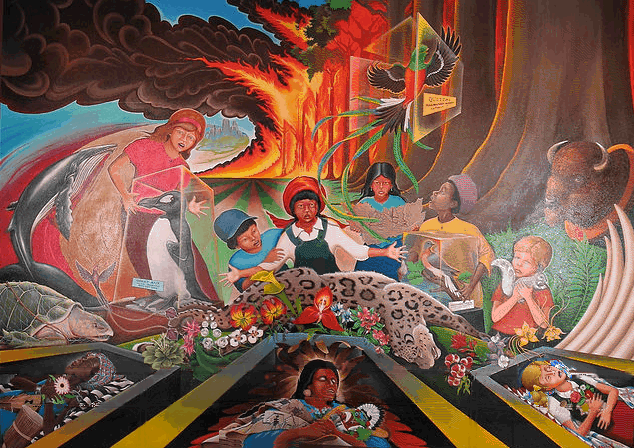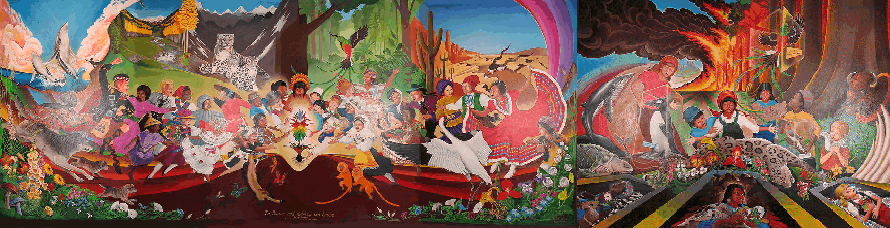 Leo Tanguma is a Chicano artist-activist who has created murals throughout the country: "My mission is to emphasize human dignity in all people, preserve the heritage of Chicanos, and most importantly, to stress the ideals of love, respect, and justice."