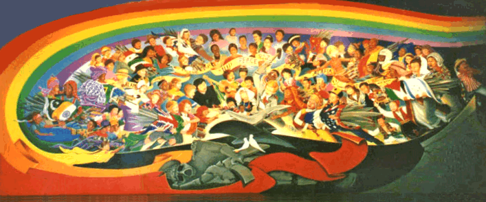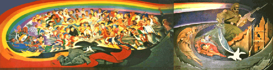 And again, as with the first Diptych, the only thing that could justify Mural 4 occurring before Mural 3 were if Mural 3 were the depiction of a longing, collective dream by children escaping from the reality expressed in the Murals, spurred on by the horror and devastation that they experience. In that case, it wouldn't really matter what order 3 and 4 were in. And, after all, this one is called Children of the World Dream of Peace.
