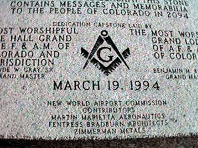 On the southeastern side of the Terminal, called The Great Hall in high Masonic fashion, is the Masonic Headstone. It openly refers to the New World Airport Commission and dedicates the airport as a "Most Worshipful" Masonic Grand Lodge with additional references to Grand Masters and Great Halls. In the center is the Masonic "G" surrounded by the compass and the square. An arm extends over the Headstone and culminates at a mysterious keypad.