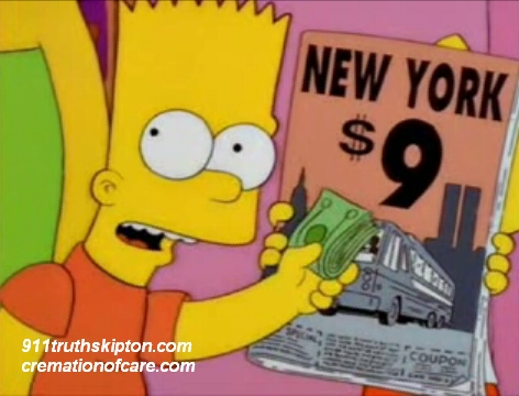 In an episode of The Simpsons (Fox TV again) that aired pre-9/11, we saw an image of a magazine that appeared to depict the message 'New York 911' as we see below.