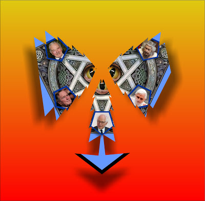 On Monday 1st October 2012, writing from Japan (full text here), the English Language spokesman of the White Dragon Society and its Asian affiliates cited Western intelligence sources in his claim that the old pentagram of corrupt global power, David Rockefeller, George Bush Senior, Queen Elizabeth II, Evelyn de Rothschild and Josef Ratzinger (the Pope) is running out of money and fiddling while Rome burns.