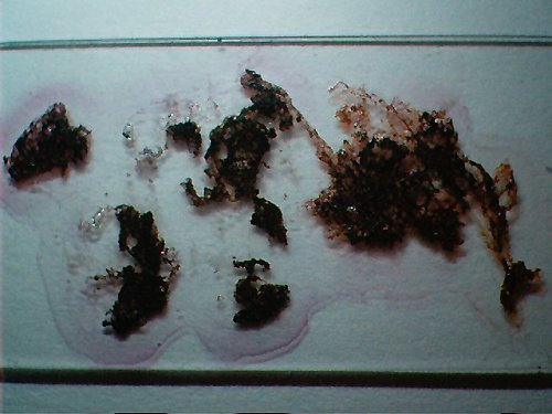 Dental-gum expelled sample. Sample extracted with use of hydrogen peroxide-red wine mix.