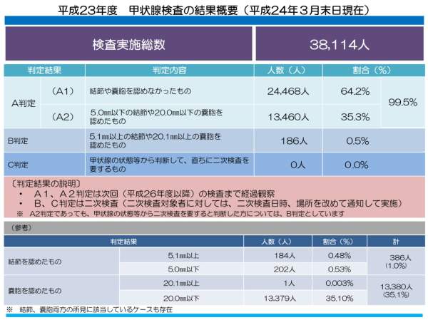 In March, Fukushima government conducted thyroid test for under 18 in 13 cities and towns such as Minamisoma city, Namiemachi, Iidatemura, Tomiokamachi etc..
