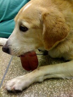 Additionally, I now have to re-teach my dog to eat, drink and adjust to life without his tongue. Feeding him takes me about 90 minutes twice a day and for at least this first week he is not to be unattended for more than 20 minutes at a time.