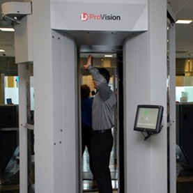 In Rapiscan’s Secure 1000 scanner, which uses ionizing radiation, a passenger stands between two large blue boxes and is scanned with a pencil X-ray beam that rapidly moves left to right and up and down the body. In the other machine, ProVision, made by defense contractor L-3 Communications, a passenger enters a chamber that looks like a round phone booth and is scanned with millimeter waves, a form of low-energy radio waves, which have not been shown to strip electrons from atoms or cause cancer.