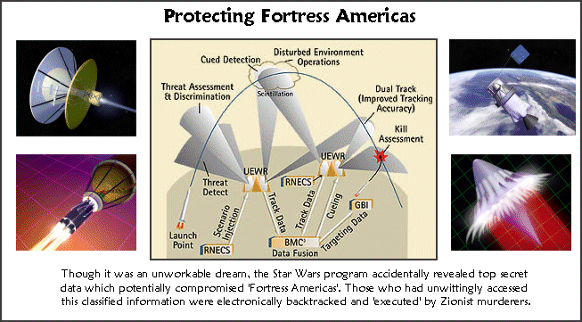 What the scientists discovered, at least in part, were sections of advanced strategic and tactical plans for Fortress Americas. One scientist mistakenly thought it was all part of the SDI scenario, while another thought it was just a practical joke. The reality was quite different. Zionists computer scientists working on Fortress Americas had hacked into the American defense systems looking for classified information, and had made the hideous mistake of doing so while using computer platforms which contained critical details about Fortress Americas.