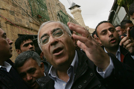 | Fayyad attended prayers at the Ibrahimi Mosque to express Palestinian solidarity [AFP]