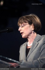 Instead of celebrating this whole hypocritical affair, we should be sickened by it. According to USHMM director Sara Bloomfield, right, (see Bradley Smith’s youtube conversation with Sara), who will present the award, “no one else has done so much (as Wiesel) to honor the victims of the Holocaust by working tirelessly to create a more just world in their memory.” Hmmm. Once again, a more just world for Jews. She explains he does this by his “conviction that the Museum should be a ‘living’ memorial.” She doesn’t explain what makes it ‘living’ and don’t expect her to. These are just words that are designed to stir emotions or good feelings in the hearer, and is what they expect. By such words we are to accept that “His legacy to humanity is unique and extraordinary.” Just don’t ask questions.