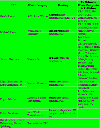 But if we could “freeze frame” the CEOs of the largest U.S. Media companies in mid 2002, covering the aftermath of 9/11, the attack on Afghanistan and the lead-in to the war in Iraq, we would find that ten outspoken Zionists ran the vast majority of U.S. television networks and other media companies including movies, radio, and publishing at that time.