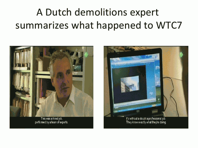 A striking video involves an interview on Dutch TV with a Dutch demolitions expert named Danny Jowenko.