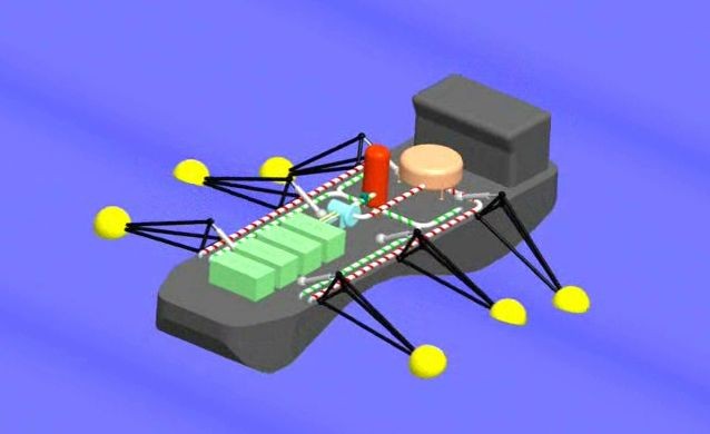 The Fraunhofer system would apparently have none of these problems. It would consist of floating buoys, that would be deployed over the sides of a 50 meter (164 foot)-long ship, on hinged arms. As those buoys proceeded to bob up and down on the waves, the arms to which they were attached would pivot up and down, generating power that would be stored on an onboard battery system. One the ship was ashore, power from those batteries could then be released into the municipal grid system, during hours of peak usage.