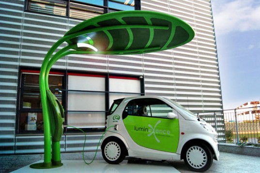 Leaf-Shaped Lotus Electric Vehicle Charger Doubles as a Solar-Powered LED Streetlight!