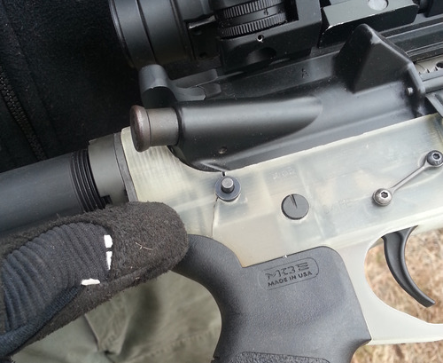 By the end of the month, there was a different failure, this time on the “rear takedown pin,” where a metal pin fits between the upper and the lower, connecting them together solidly. There, the 3D-printed plastic was cracking around the pin, making the gun less safe to use.